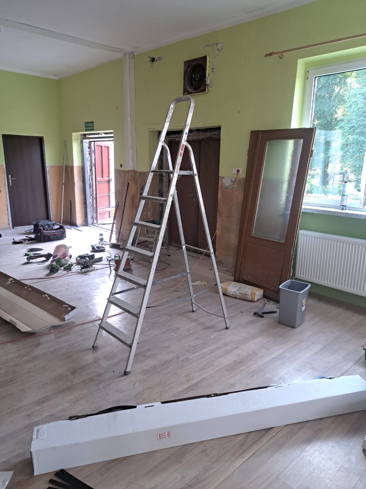 Równolegle prowadzone są również prace remontowe w sali Domu Działkowca, obejmujące:
